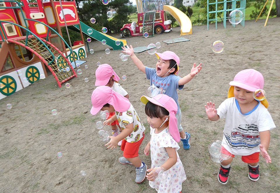 園児・保護者ともに安心して生活できる保育及び保育サービスに努め異年齢保育を取り入れ失われつつある心の教育を重視し他や弱者に対する『思いやりの慈しみの心』が身につく保育を目標とする。